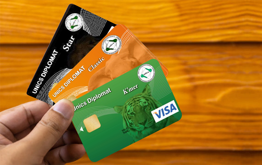 UNICS DIPLOMAT Card is accepted on all VISA enabled ATM in Cameroon and abroad.